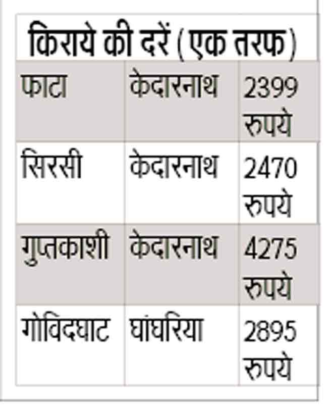 चारधाम यात्रा के दौरान केदारनाथ व हेमकुंड साहिब के लिए हेली सेवाओं का संचालन होता है। इस बार हेली सेवाओं को लेकर हाईकोर्ट में दायर याचिका की सुनवाई लंबी चलने की वजह से यात्रा शुरू होने के बावजूद हेली सेवाएं शुरू नहीं हो पाई थीं। अब शासन ने तकनीकी और फाइनेंशियल बिड खोल ली हैं। इन दोनों स्थानों के लिए दस कंपनियों को चयनित किया गया है। इसमें नौ कंपनियां केदारनाथ और एक कंपनी हेमकुंड साहिब में हेली सेवा का संचालन करेगी।